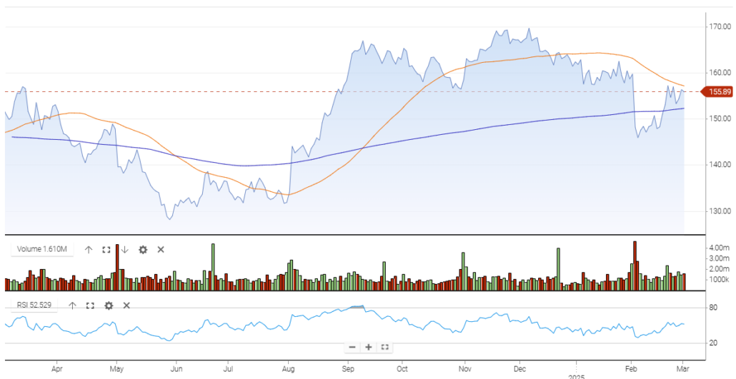 - 52-Week Range: $127.60 – $171.37
